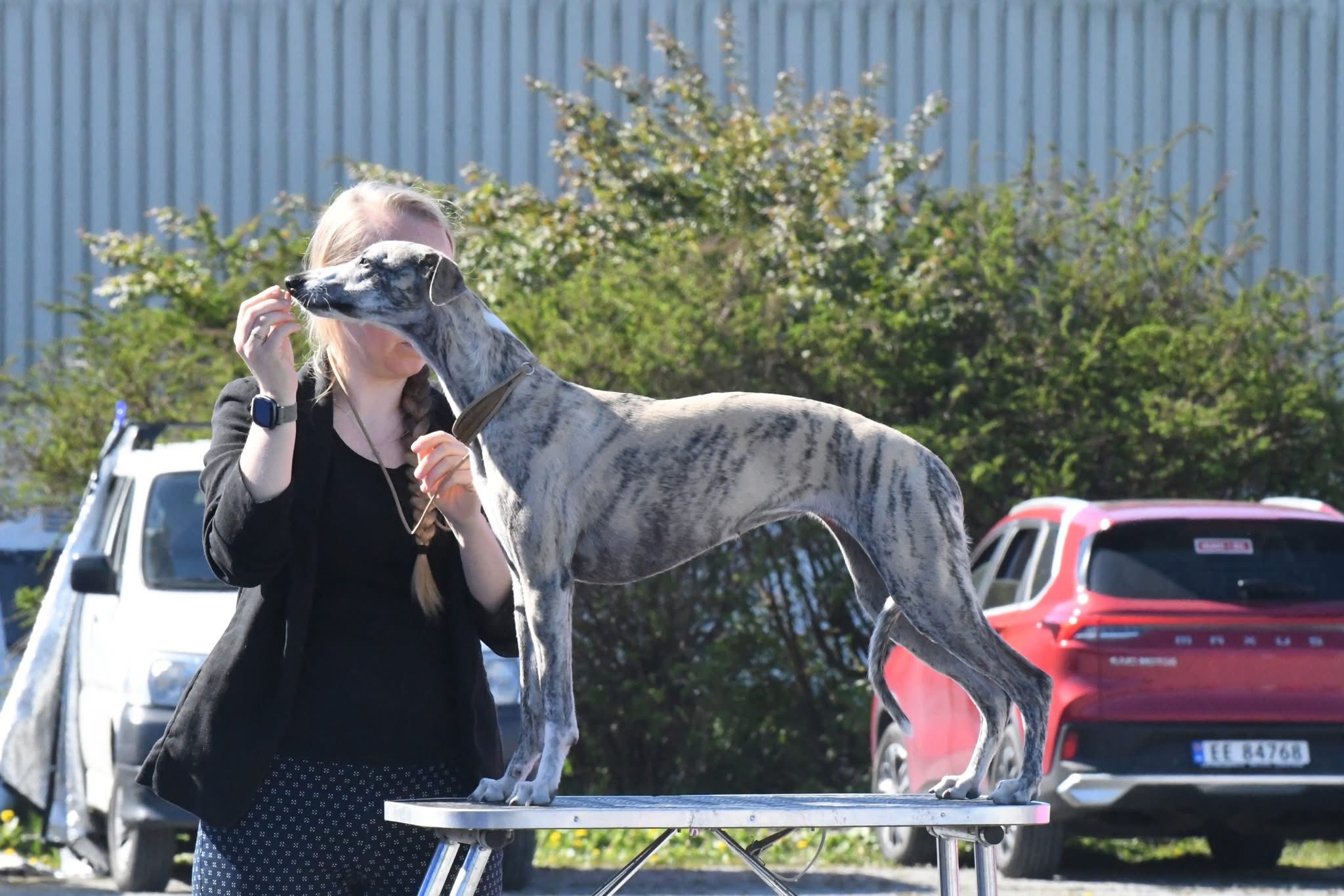 NAT Norsk Greyhound Klub Sunday 4.05.2025 Alfred Brilliant Pearl’s Lazy Butler Winner 6-9 months Puppy Class BOB PUPPY BEST IN SHOW 2 Congratulations Anne Grethe Thank you for photo Heidi